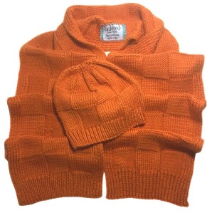 Beanie and scarf, both of the Southern collection, color Flamenco.